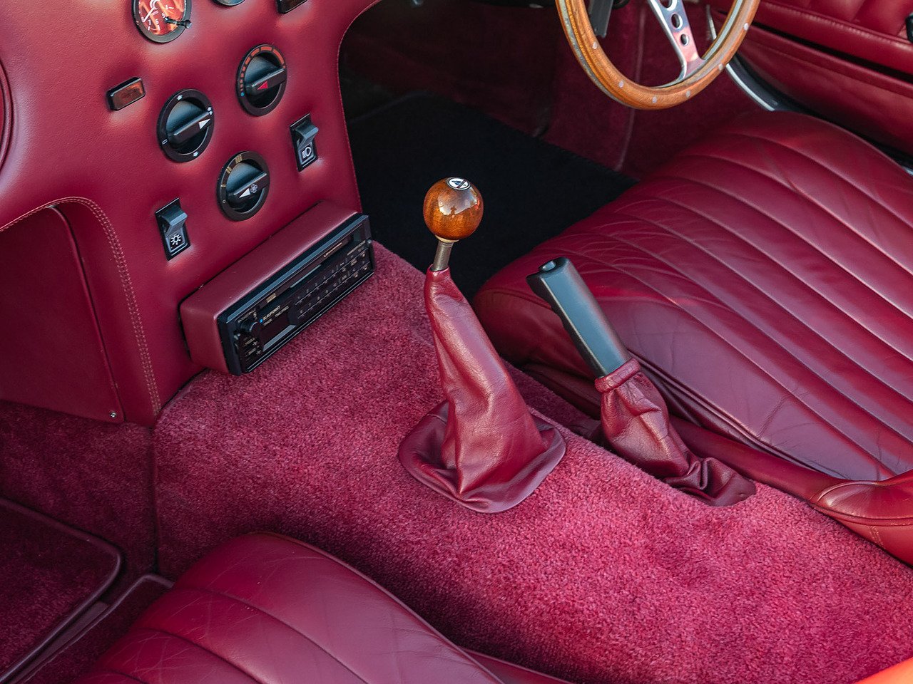Factory equipment included: Mota-Lita wood-rim steering wheel and gear knob, 16-inch black Hallibrand alloy wheels with three-spoke spinners, Glass wind wings and chrome stone guards, Pioneer Radio/Cassette, Full wet-weather gear and Everflex tonneau cover