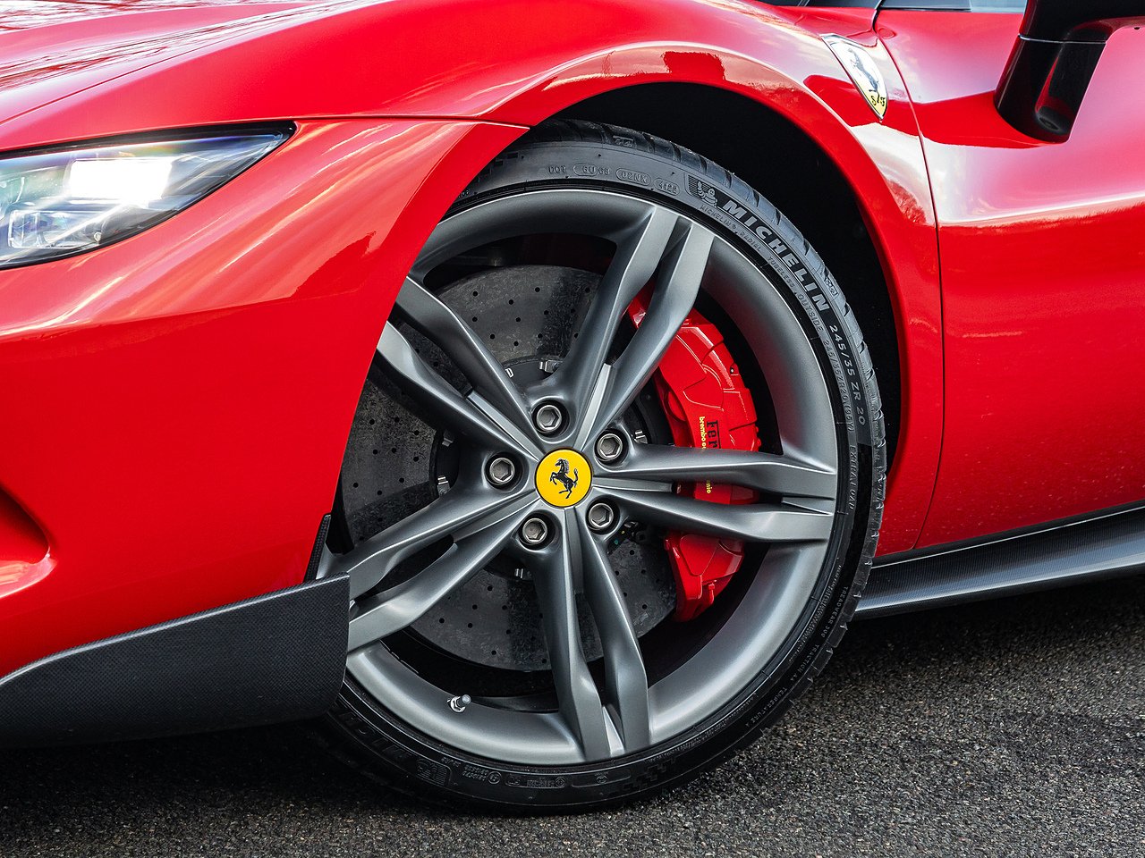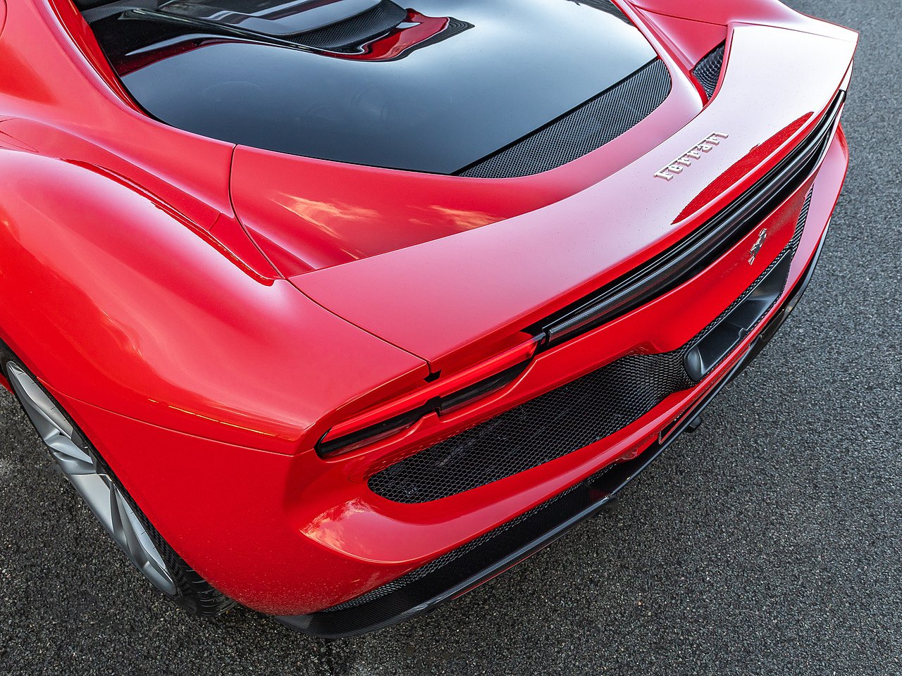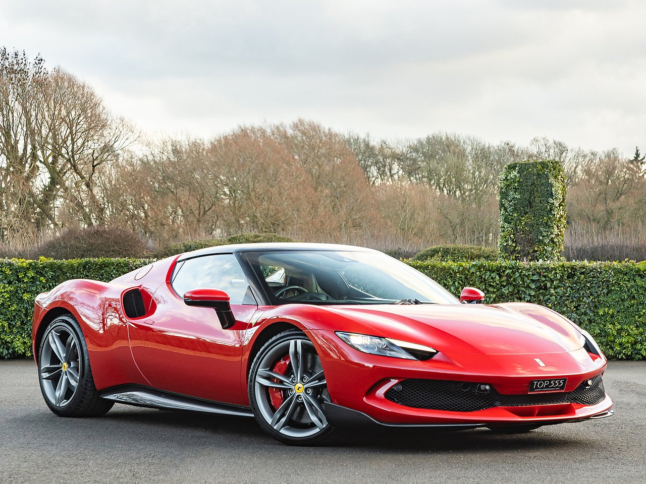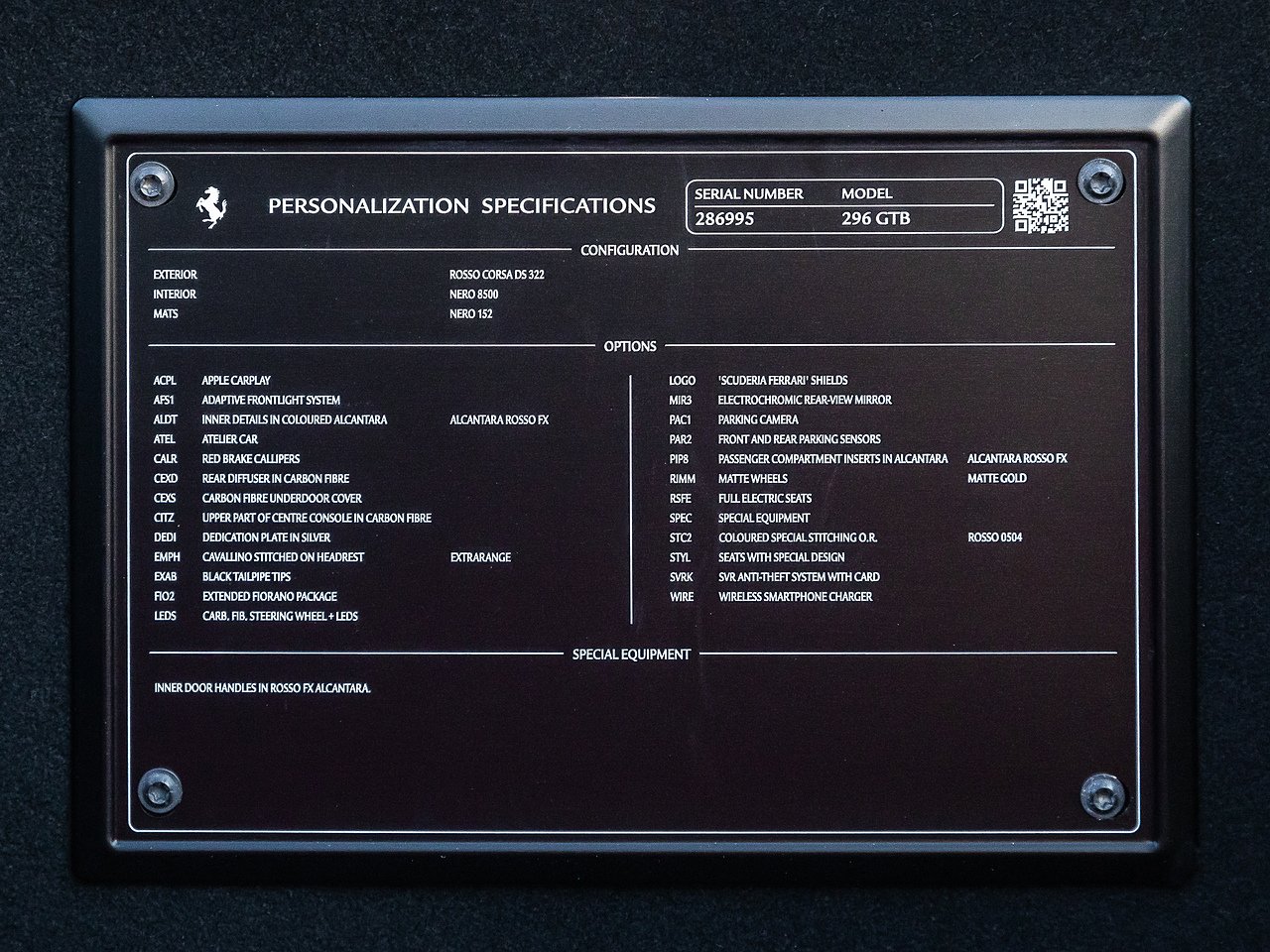 20" Matte Grigio Corsa Wheels | Apple CarPlay | Rosso Corsa Brake Calipers | Carbon Fibre Steering Wheel and LEDs | Rear Diffuser in Carbon Fibre | Carbon Fibre Underdoor Cover | Upper Part of Centre Console in Carbon Fibre | Adaptive Front Light System (AFS) | ATELIER Dedication Plate in Silver | Special Design Seats with Cavallino Stitched on Headrest | Black Ceramic Tailpipe Tips | Scuderia Ferrari Shields | Electrochromic Rear View Mirror | Front and Rear Parking Sensors | Colour Upon Request For Alcantara Insert to Passenger Compartment in Rosso FX | Full Electric Seats | Coloured Special Stitching in Rosso | Inner Details in Coloured Alcantara - Rosso FX | Inner Door Handles in Rosso FX Alcantara | Wireless Smart Phone Charger | Titanium Wheel Bolts | Bi-Colour Roof Finished in Nero - Atelier Order Only (£7,680)