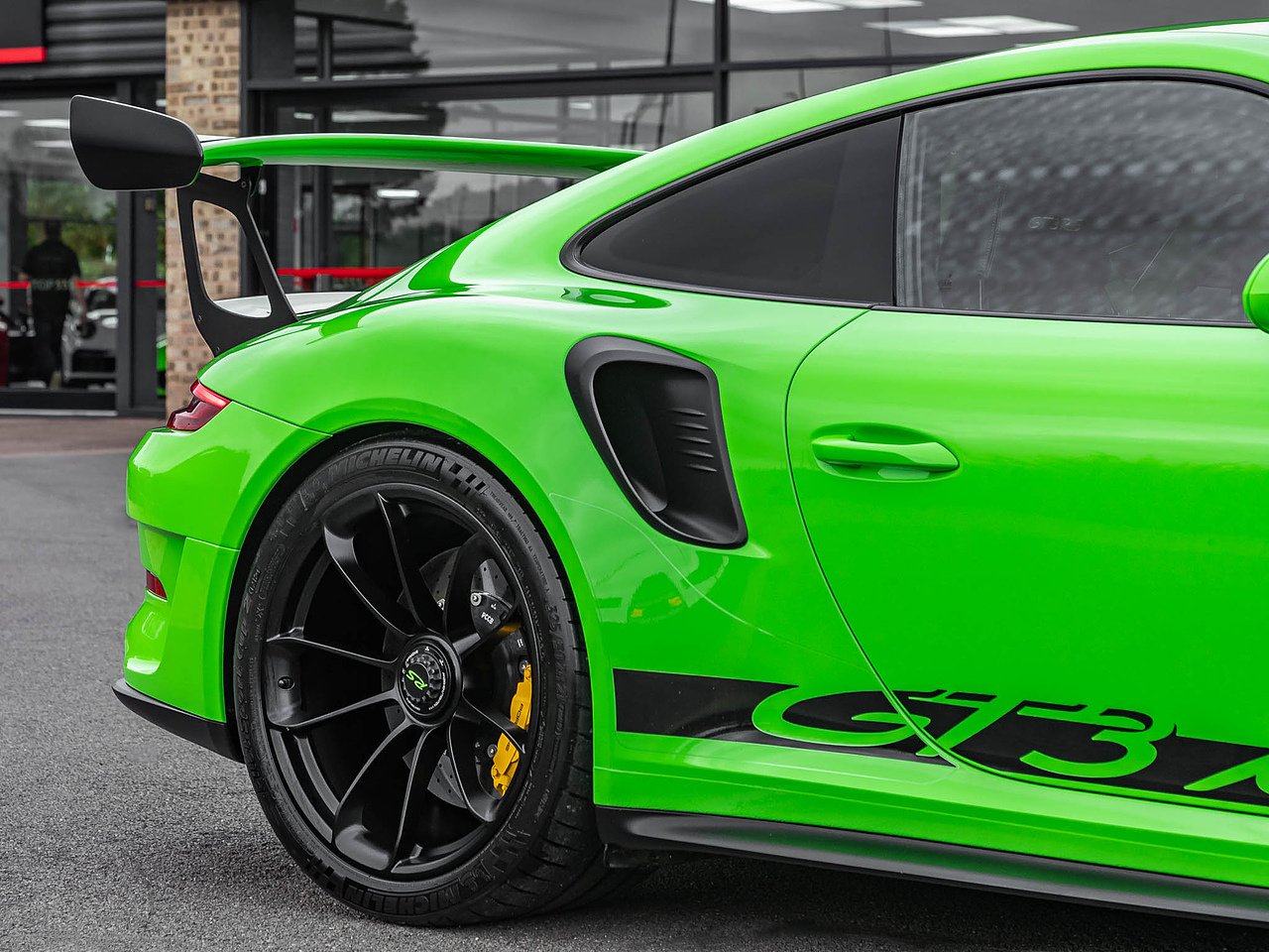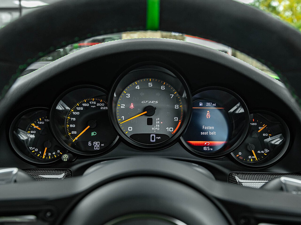 20/21” Wheels Painted in Satin Black I Porsche Ceramic Composite Brake (PCCB) | Front Axle Lifting System | Roll Cage In Lizard Green | Chrono Package And Preparation For Lap Trigger | LED Main Headlights in Black Including Porsche Dynamic Light System (PDLS) | Steering Wheel Rim with 12-o'clock Marker in Lizard Green | Six-Point Racing Harness For Passenger Seat | Smoking Package for Charging Point Only | Sun Visors in Alcantara | Lizard Green Seat Belts | Lightweight Privacy Glass | Carbon Fibre Interior Trim Package | Carbon Fibre Door Sill Guards | PORSCHE Decal To Rear Spoiler